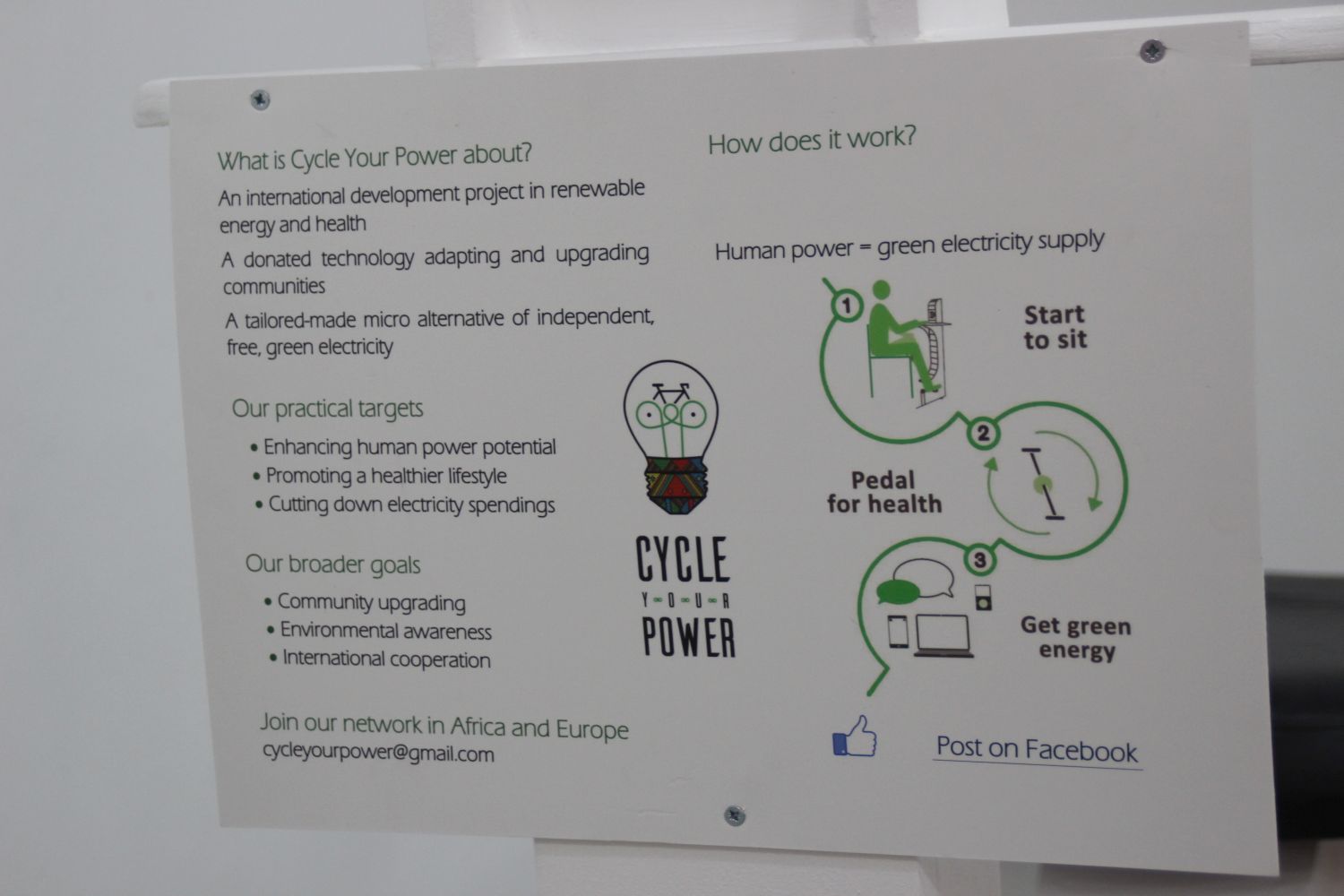 Mit Cycle Your Power lässt sich die Energie für das Mobiltelefon oder Tablet erradeln, d.h. durch kräftiges Treten Strom erzeugen. Dieses Projekt wurde von Immo Böhning und Yasmina Sabatini Moreau zunächst in Aachen an der RWTH getestet und dann von den beiden im Frühjahr 2016 in Kapstadt umgesetzt. Die Technik stammt von dem belgischen Unternehmen WeWatt, die das Projekt in Kapstadt wohlwollend unterstützt hat. Deren professionelle Bänke mit Ladestationen kann man an den großen Pariser Bahnhöfen testen.