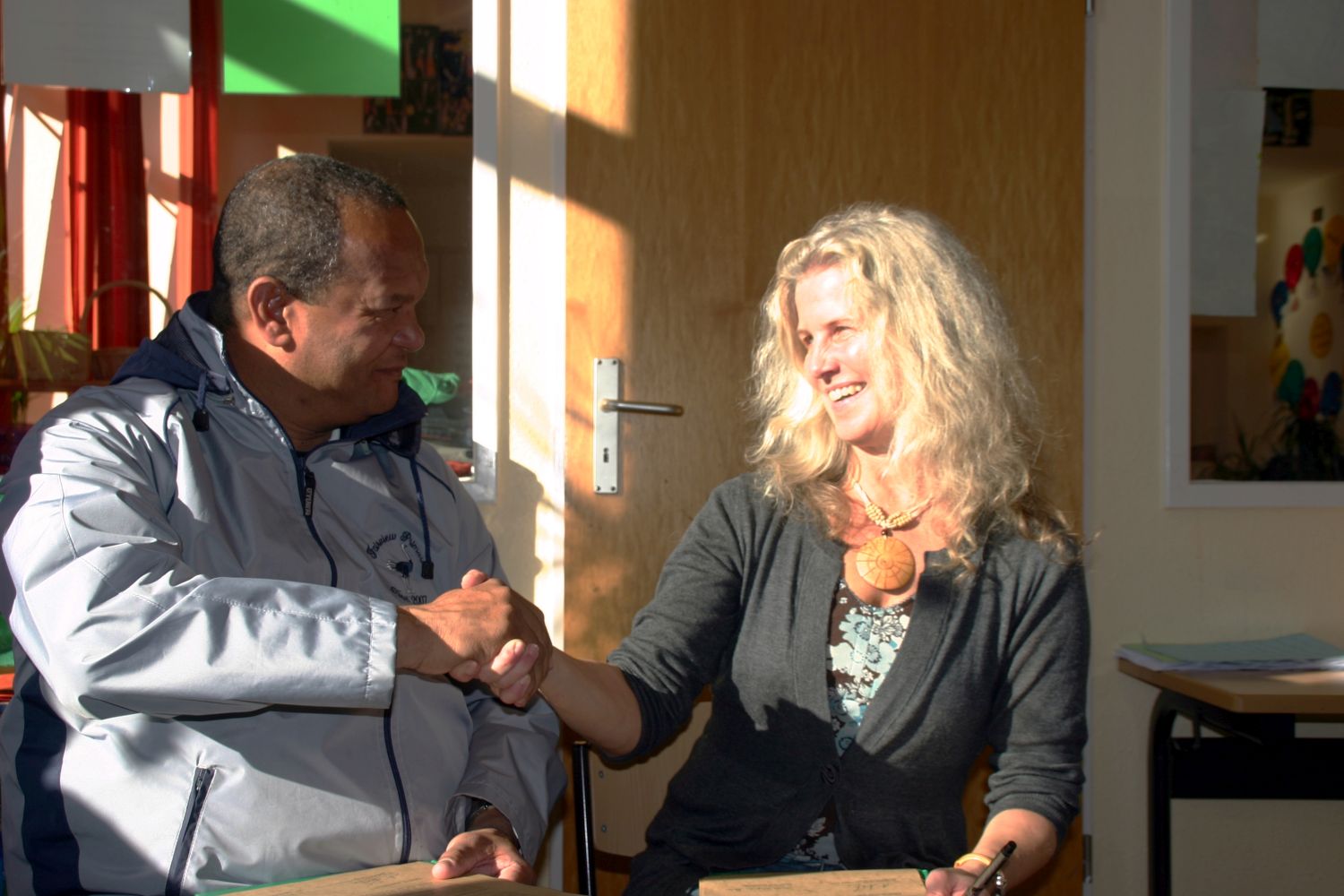 Begonnen hat diese Partnerschaft im Frühjahr 2008, als gleichzeitig an der Schule am Lousberg in Aachen und der Fairview Primary Schollin Grassy Park, die Schulhöfe mit Hilfe von Stadtoasen e.V. umgestaltet wurden (vgl. Bauwagen goes South). Die Lehrer und Schüler tauschten sich über ihre Erfahrungen aus und es entwickelten sich Brieffreundschaften. Die Briefe wurden durch verschiedene Besucher persönlich übergeben. Noch im gleichen Jahr konnte Schulleiter Aubrey de Wet konnte die Schule Am Lousberg besuchen. Zwischen den Schulen wurde eine Partnerschaftsvereinbarung unterschrieben. Mr. De Wet half auch bei der Fahrradsammelaktion 2008 mit, viele der gesammelten Kinder- und Jugendfahrräder kamen den Fairview-Kindern zu Gute.