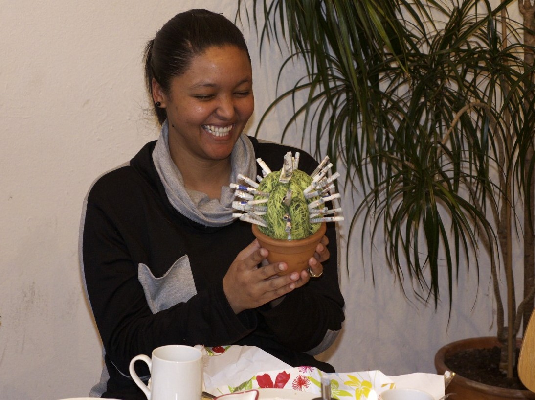 Engagement Global fördert junge Deutsche mit dem Programm Konkreter Friedensdienst (KF) bei selbst organisierten Projekten im Globalen Süden. Vom 14.09.-24.11.2013 fand erstmalig (und einmalig) ein Projekt für junge Süd-Teilnehmende in Deutschland statt: „Stärkung zivilgesellschaftlicher Akteure in Ländern des Südens durch Austausch und Kooperation“. Sieben Teilnehmende von Partnerorganisationen von Vereinen aus NRW aus fünf Ländern (Mexiko, Namibia, Nicaragua, Südafrika und Togo) lernten die Rolle und Arbeitsweise deutscher Organisationen kennen. Shonelle Williams von Selfhelp Manenberg hospitierte im Spielhaus Kennedypark, in der OGS der Grundschule am Lousberg und in der KITA RoKoKo. Sie half außerdem tatkräftig bei der Fahrrad-Sammelaktion mit und konnte dann auch – zurück in Kapstadt – bei der Verteilung der Fahrräder helfen.