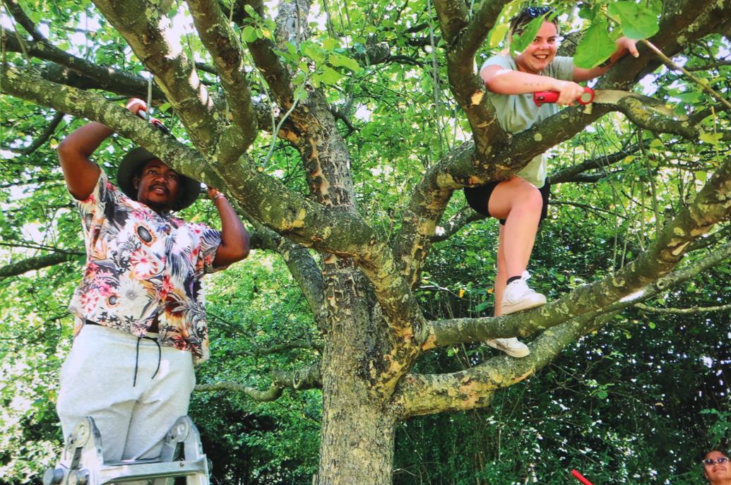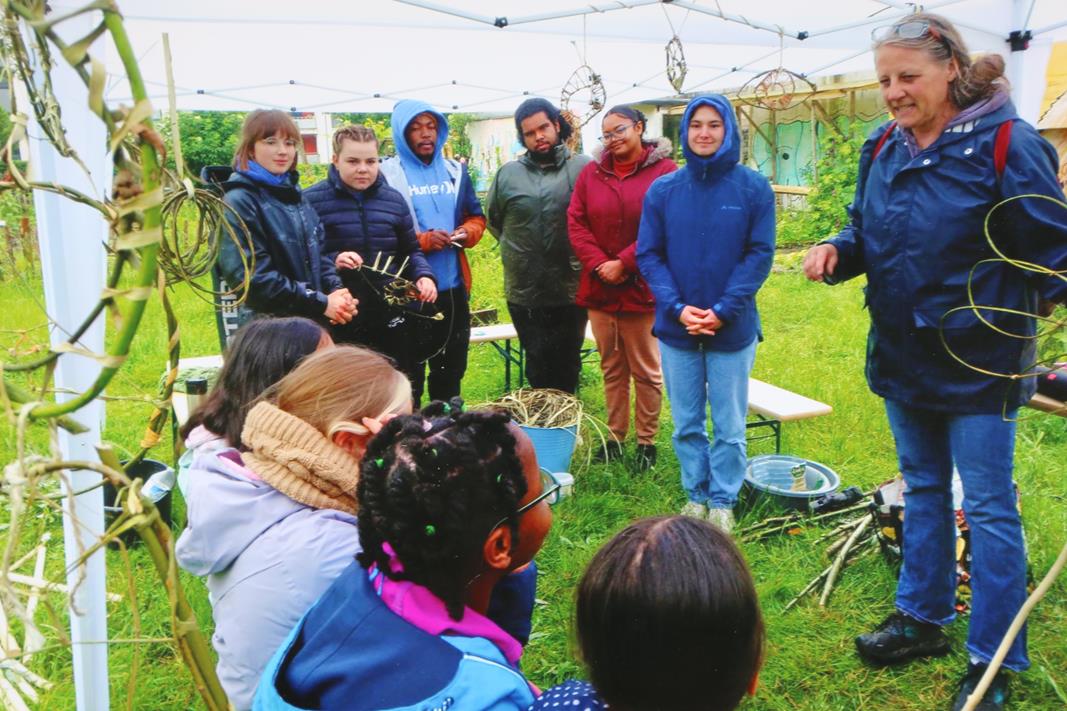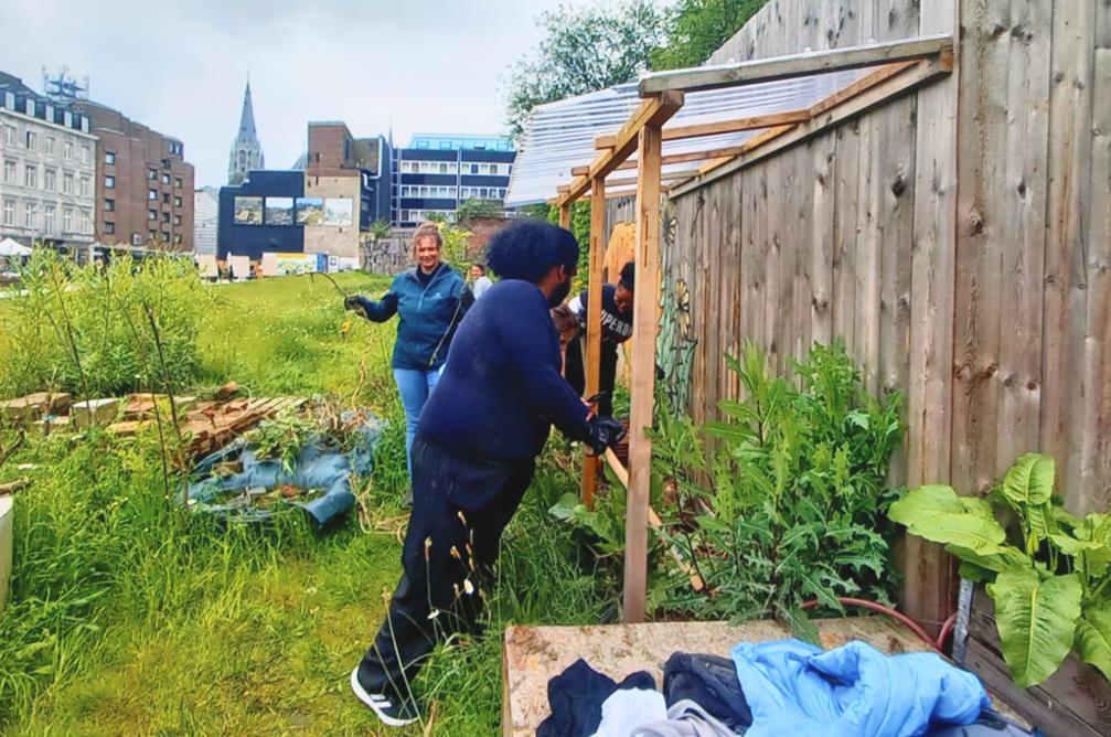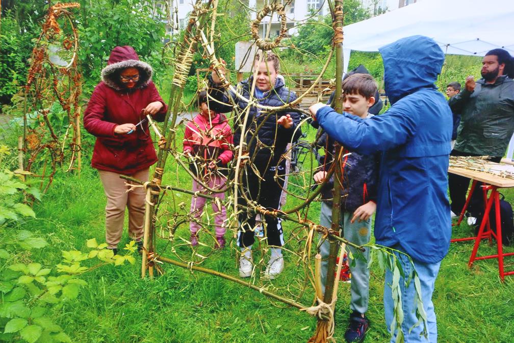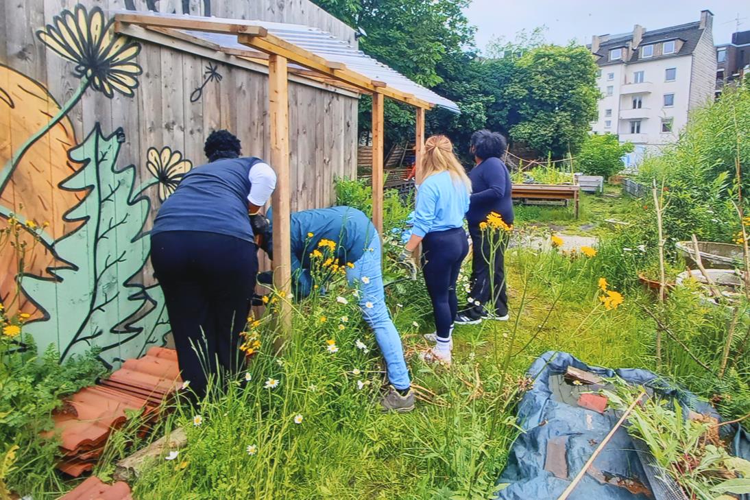 Unser Einsatz im Büchelgarten geschah im Zusammenhang mit einer politischen Initiative zur Schaffung eines grüneren städtischen Raums im Stadtzentrum. Wir leisteten einen Beitrag durch den Bau eines Tipis und halfen bei der Säuberung des Geländes, wodurch sich der Gesamtzustand des Gartens erheblich verbesserte. Wir halfen beim Bau von Möbeln, um den Garten benutzerfreundlicher zu gestalten. Während des Kimiko-Festivals beteiligten wir uns aktiv am Stand des Büchelgartens, um für den Garten zu werben und mit den Menschen in Kontakt zu treten.