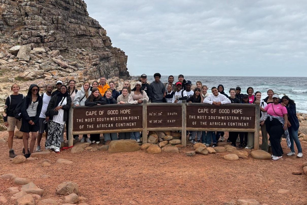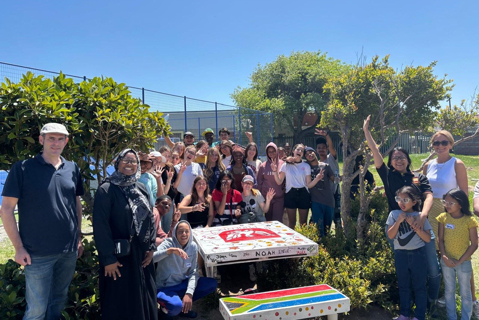 The exchange was discontinued for several years due to the Heinsberg parents’ fear of the violence flaring up on the streets of Manenberg and new visa regulations for young South Africans under the age of 18. In 2019, Heinsberg teacher Caroline Wolff visited Phoenix again and it was agreed that the exchange should be continued. However, due to the Covid19 pandemic, the visit planned for 2020 could not take place. However, it was only postponed and continued in October 2022 with a visit to Manenberg by the largest student-teacher group to date. The return visit from Manenberg took place in June 2023. The murals from the Phoenix canteen from the previous year were “copied” onto the pillars around the Heinsberg schoolyard. The recent visit took place in Cape Town in October 2025 (again 14 learnes with two teachers).
